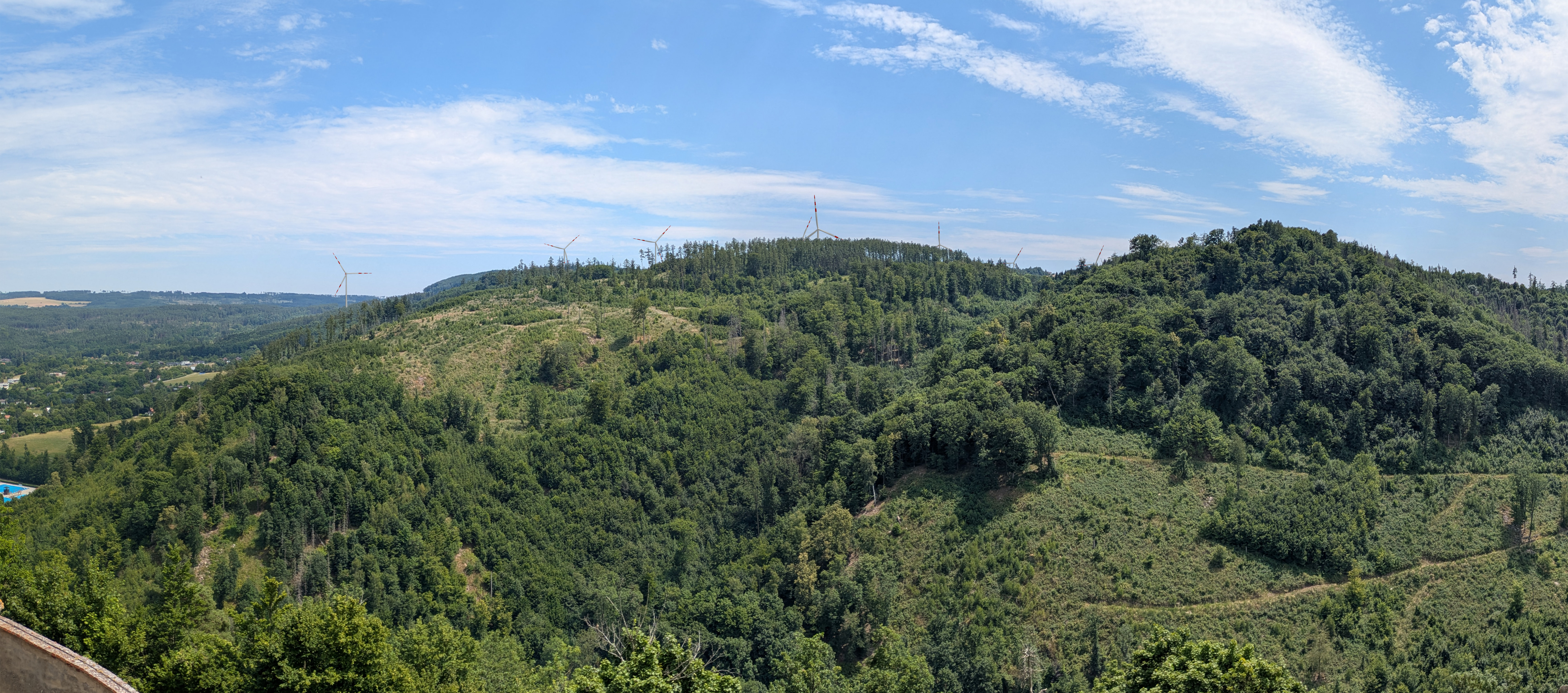 In den letzten Jahren konnte man hautnah erleben, wie die Wälder um Boskovice dem Borkenkäfer und orkanartigen Stürmen zum Opfer fielen. Die immer trockeneren Verhältnisse durch den Klimawandel begünstigen die rasche Ausbreitung des Käfers, der die heimischen Hölzer massiv schädigt. Satellitenaufnahmen im Jahresverlauf zeigen ganz klar das Ausmaß des Kahlschlags.