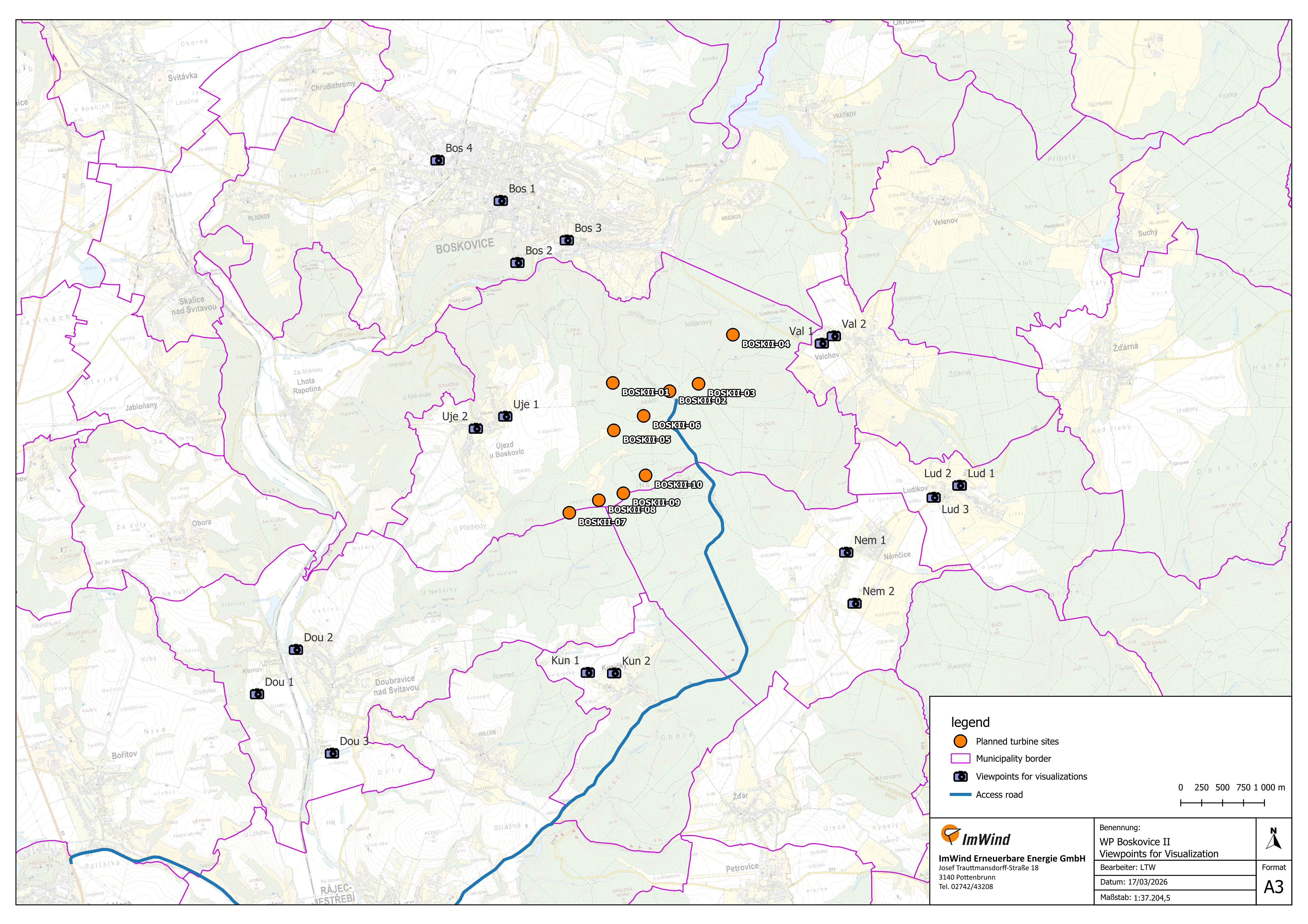 Wir, die ImWind, planen in der Region südlich der Gemeinde Boskovice in Südmähren einen Windpark mit bis zu 10 modernen Windkraftanlagen. Das Potenzialgebiet befindet sich in einem Wald, der das Grenzgebiet unterschiedlicher Gemeinden markiert.